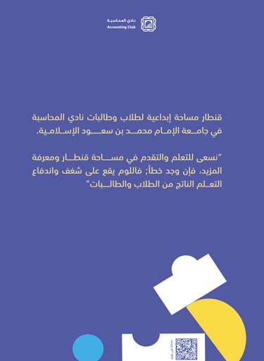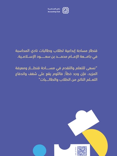 "نفكر بمنطقية، نخوض تجربة الوصول للحل، نحقق اهداف رحلتنا التعليمية ونتجاوز القيود التي تحدنا من خلال تنويع مصادر واساليبالتعلم المحاسبي"